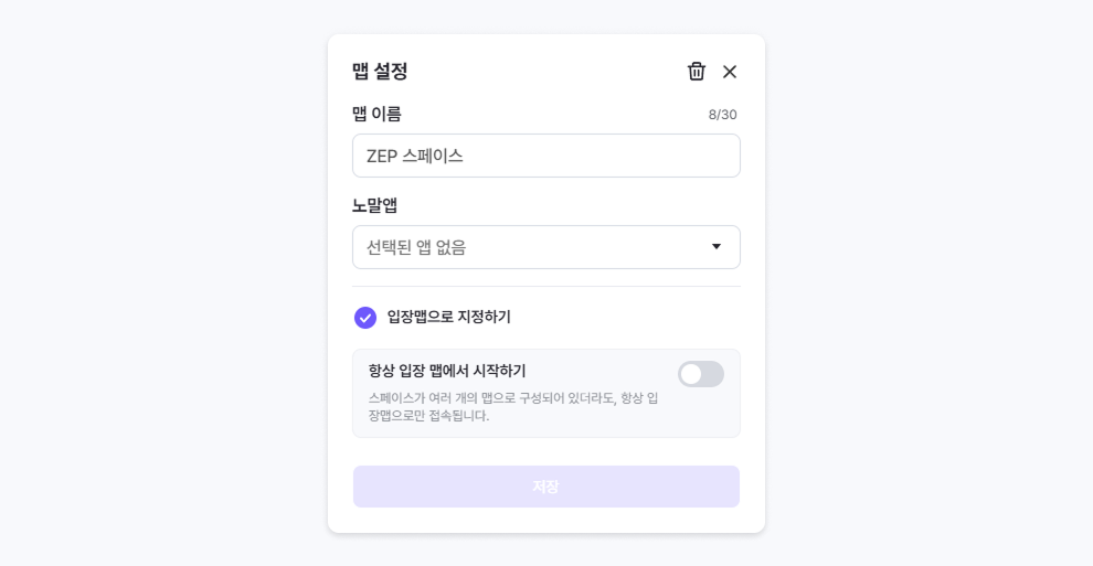 스페이스에 새 맵을 추가하고 싶다면, [+새 맵 추가하기] 버튼을 눌러 맵을 생성할 수 있습니다.