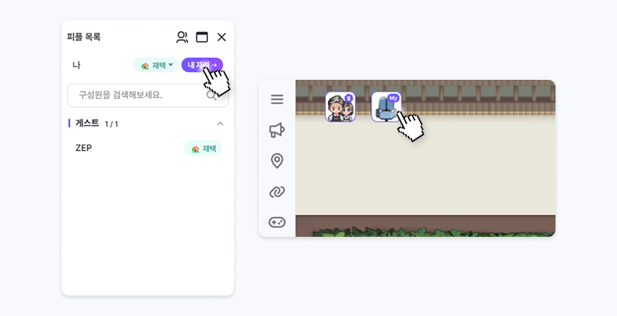 피플목록과 동시에 팀원이 무엇을 하고 있는지 자리 기반으로 확인이 가능해요.