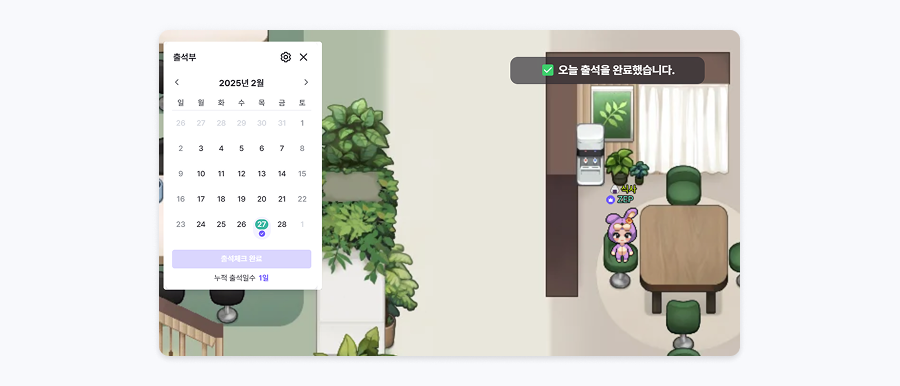 스페이스에 참가한 사용자들이 하루 한 번 출석 체크를 할 수 있는 앱입니다.