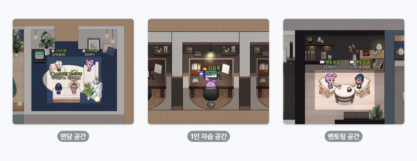 면담, 집중 학습, 멘토링을 하는 상황에 프라이빗 공간에서 대화를 나눠보세요.