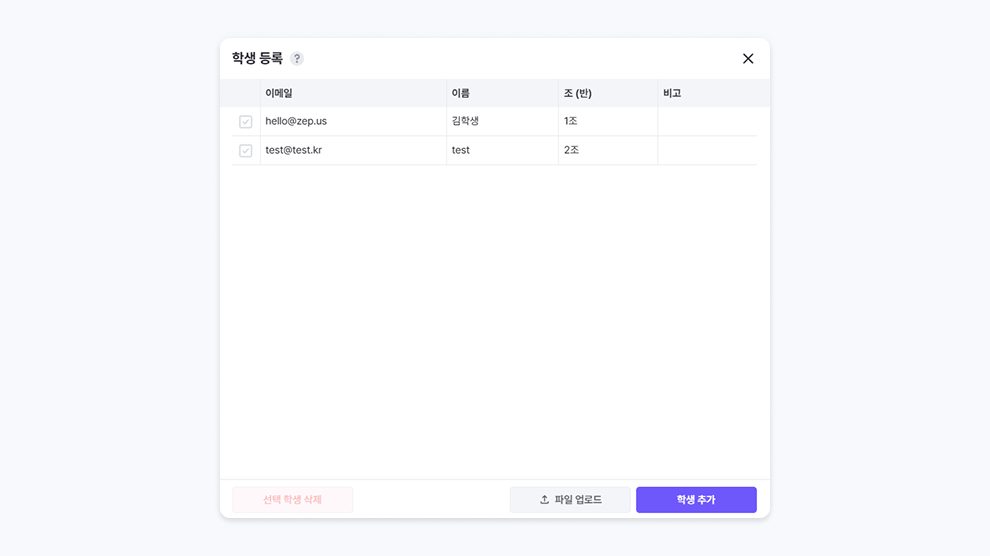 CSV 파일을 통해 학생 목록을 업로드 할 수 있습니다.