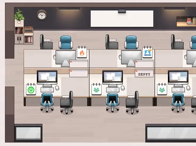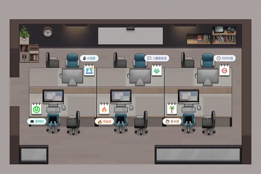 자리를 지정하면, 책상에 내 상태를 알려주는 캘린더와 이름표가 생성됩니다.