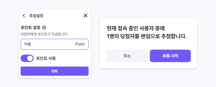 추첨 설정으로 추첨 당첨자에게 포인트를 지급할 수 있습니다.