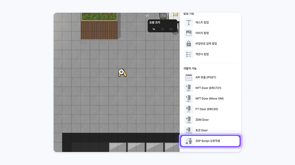 오브젝트 설정창에서 [ZEP Script 상호작용]을 선택해 주세요.