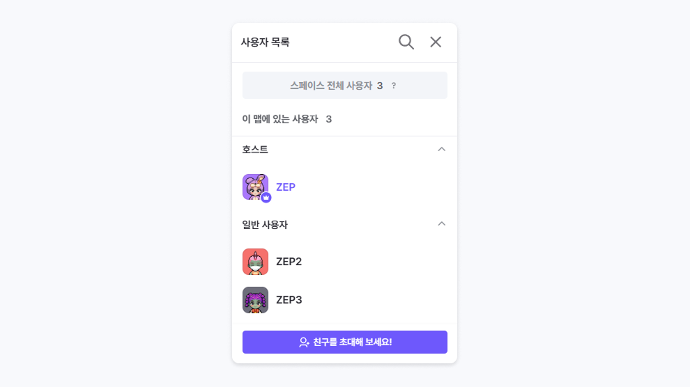 스포트라이트에 지정된 사용자의 비디오/오디오/화면공유를 키면 맵 전체에 공유됩니다.