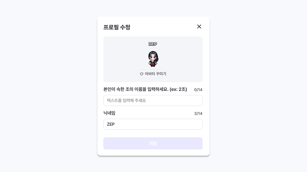 닉네임은 공백을 포함하여 최대 14자까지 수정 가능합니다.