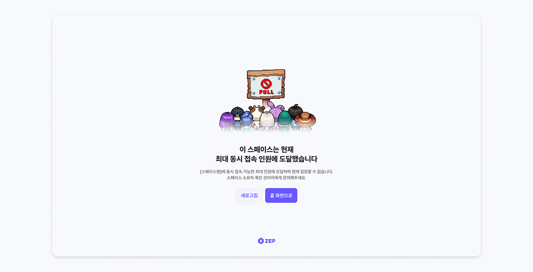정원이 초과된 스페이스에 추가로 접속하는 유저는 입장이 제한됩니다.