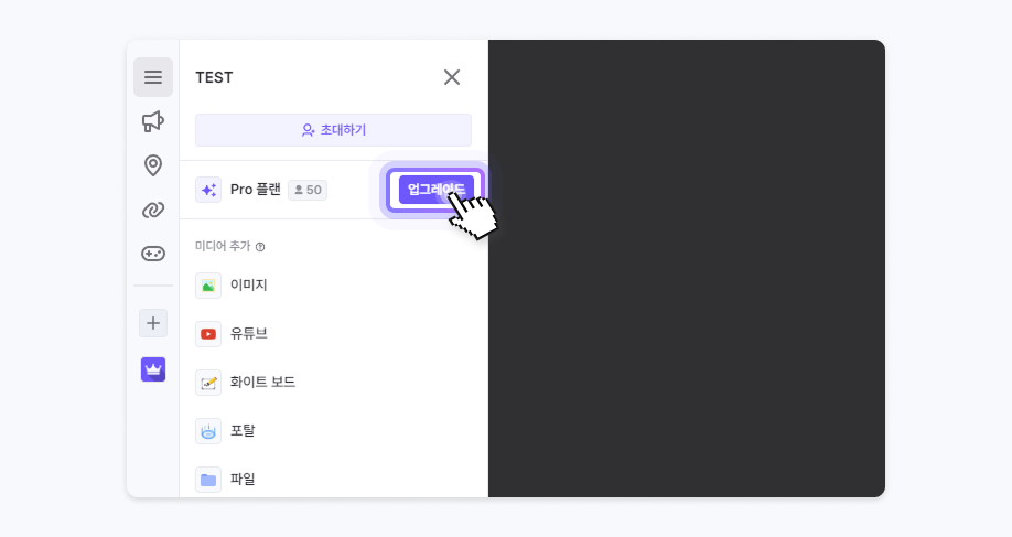 업그레이드를 원하는 스페이스의 사이드바에서 [업그레이드] 버튼을 눌러주세요.