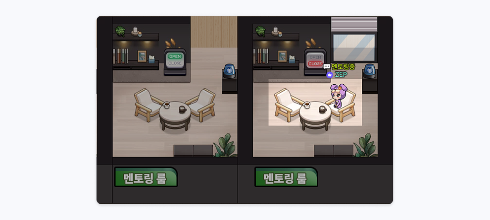 문을 열고 닫을 수 있는 멘토룸을 만들 수 있습니다.