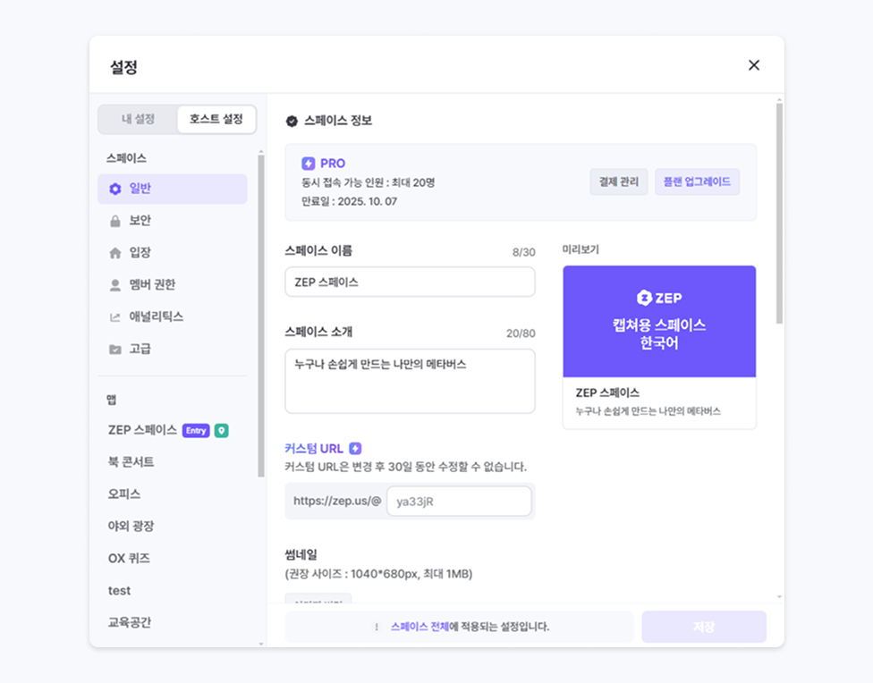 zep.us/@ 주소를 공유해 스페이스를 홍보해 보세요.