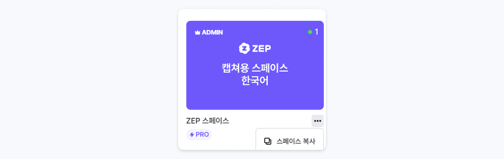 [내 스페이스] > 복사 원하는 스페이스 옆 점 세 개 클릭 > [스페이스 복사] 버튼 클릭 시, 즉시 스페이스 복사가 진행됩니다.