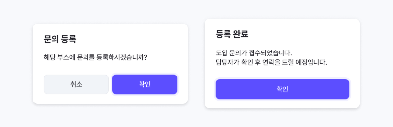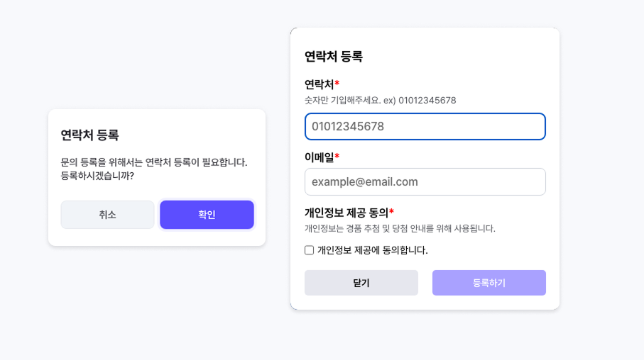 연락처 등록이 완료되면 [문의 등록] 팝업이 나타납니다.