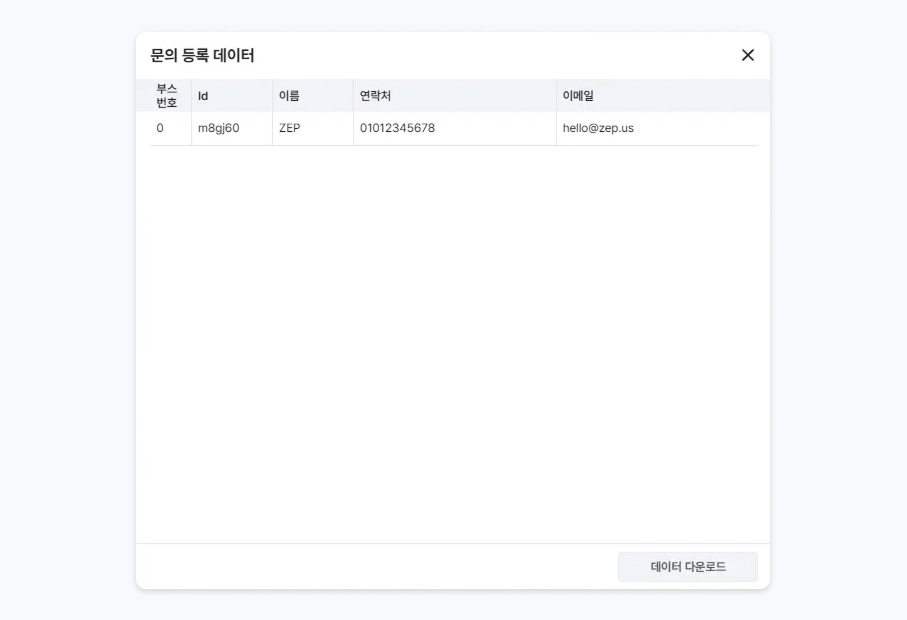 등록된 문의 데이터는 표로 확인할 수 있습니다.