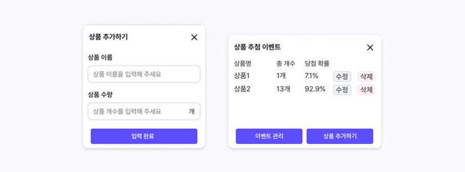[상품 추가하기] 버튼을 눌러 상품을 추가할 수 있습니다.