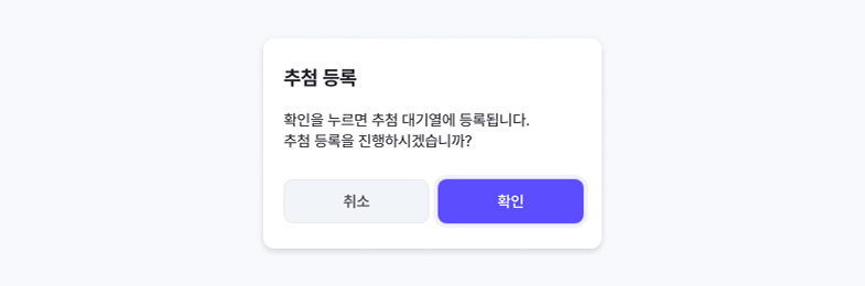 추첨 등록 팝업에서 확인을 누르면 추첨 대기열에 등록됩니다.