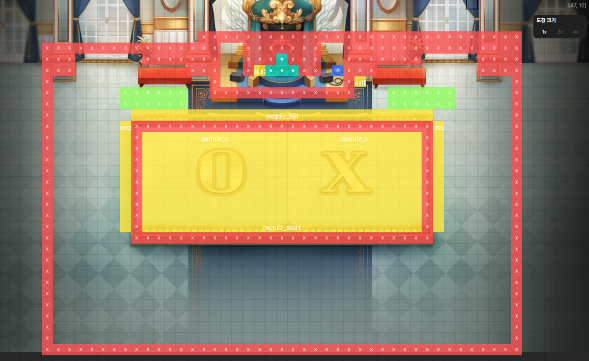 새로운 맵에서 OX퀴즈를 진행하려면 맵 에디터에서 OX퀴즈를 위한 설정이 필요합니다.