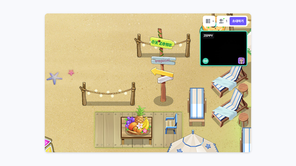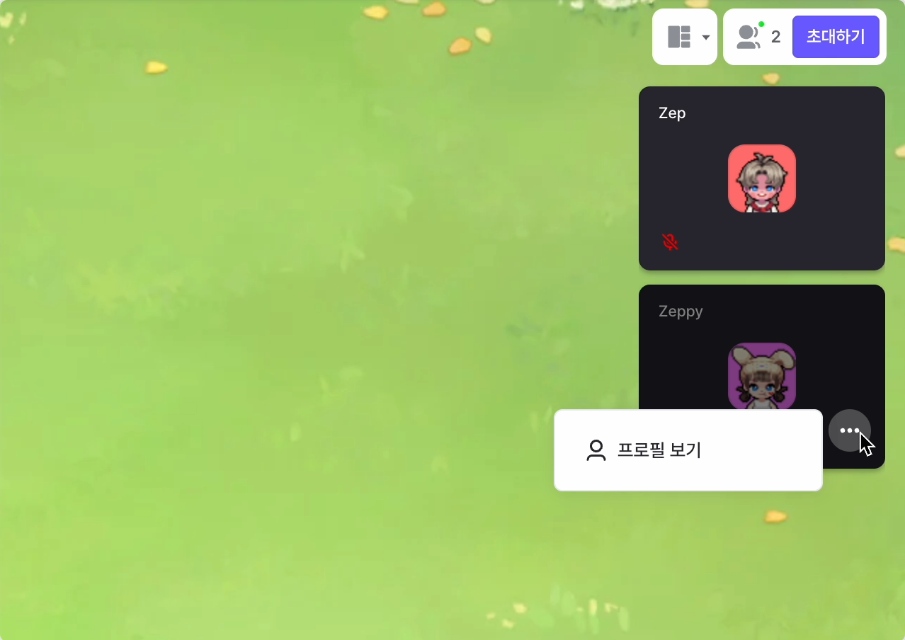 오디오를 사용하고 있는 사용자는 비디오 박스 내부에 민트색 테두리와 보이스 애니메이션이 표시됩니다.