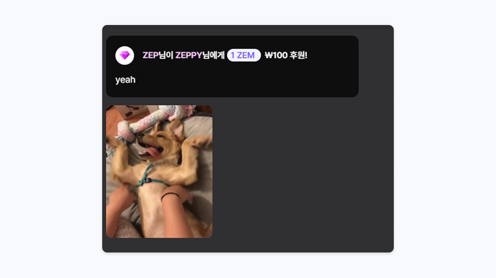 후원은 움직이는 이미지 (Giphy)와 메세지를 함께 스페이스에 노출시킬 수 있으며, 후원 시 모든 유저들에게 노출됩니다.