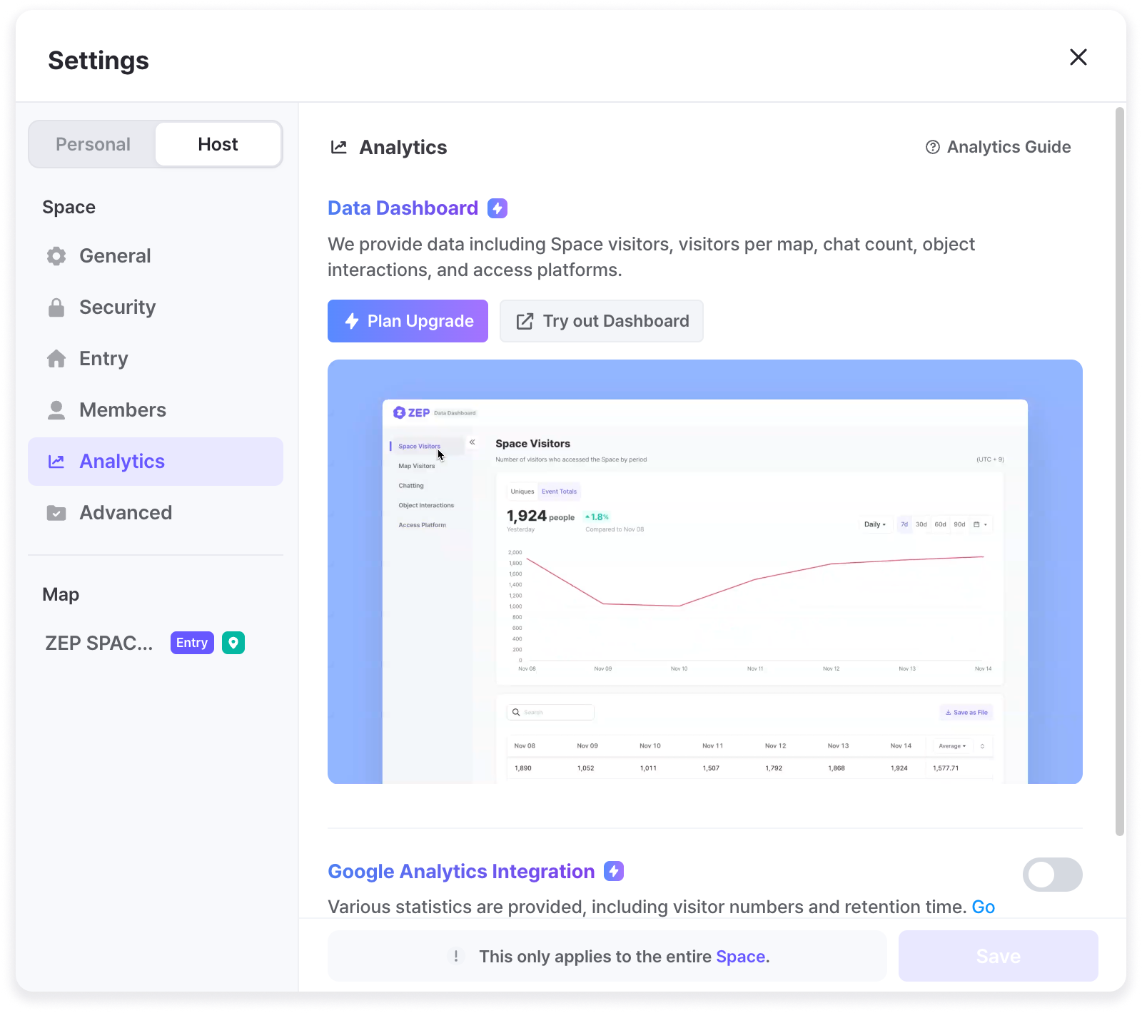 You can access the Data Dashboard from [Settings] > [Analytics] > [Data Dashboard].