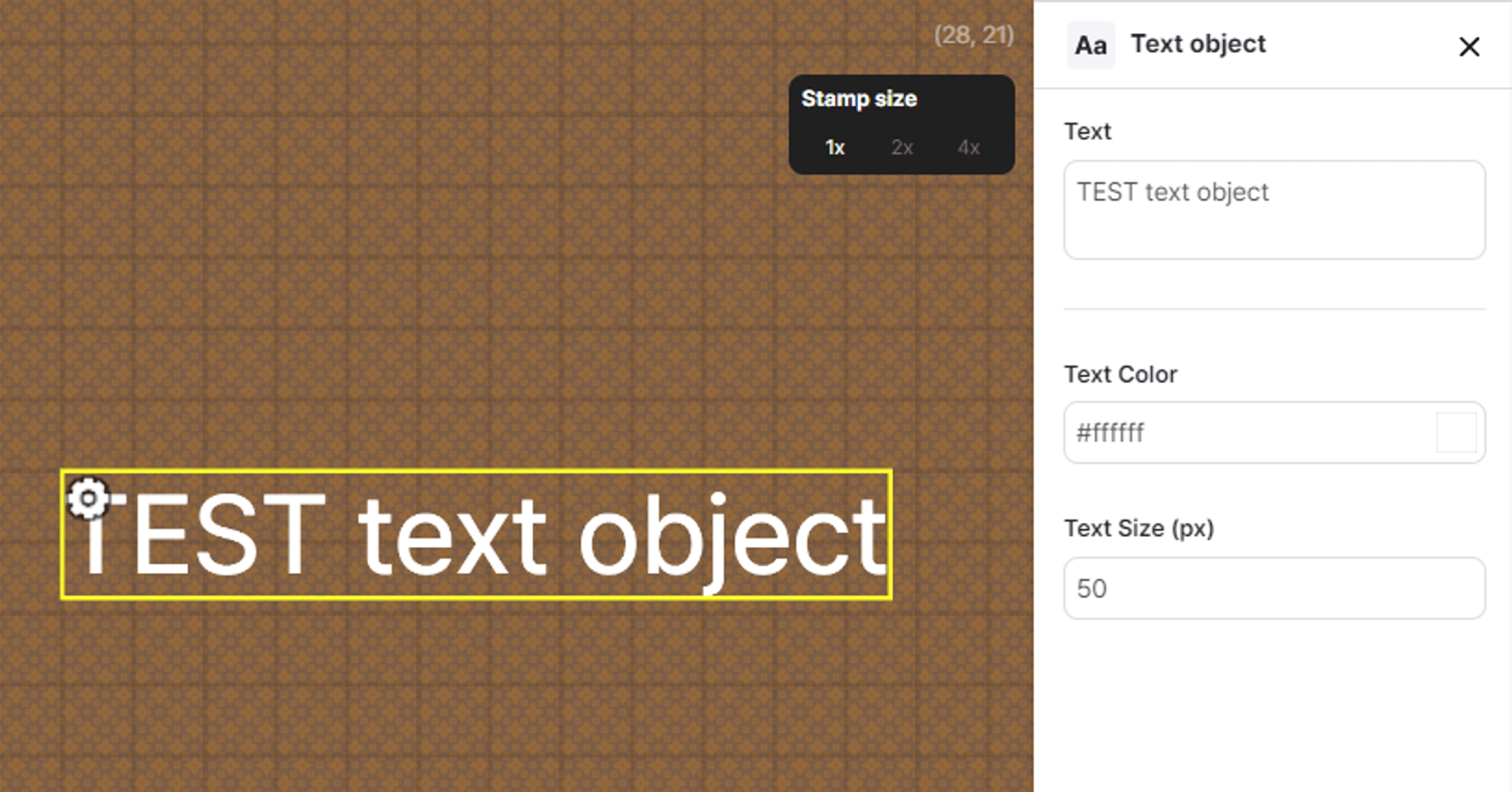 After placing the text object on the map, you can modify it by clicking the gear icon.