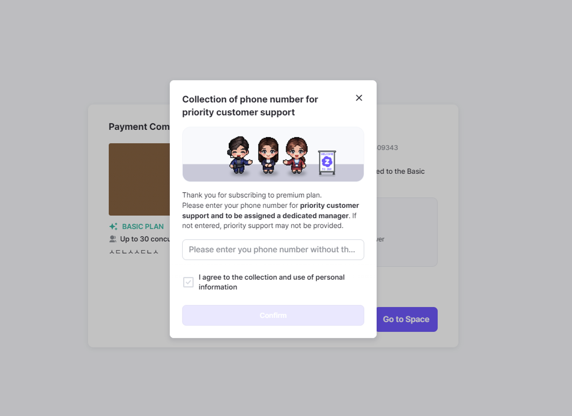 The imminent notification of the number of concurrent users was displayed to subscribers of paid plans (Basic, Pro, Enterprise). Modified to no longer be displayed in Spaces subscribed to that plan.