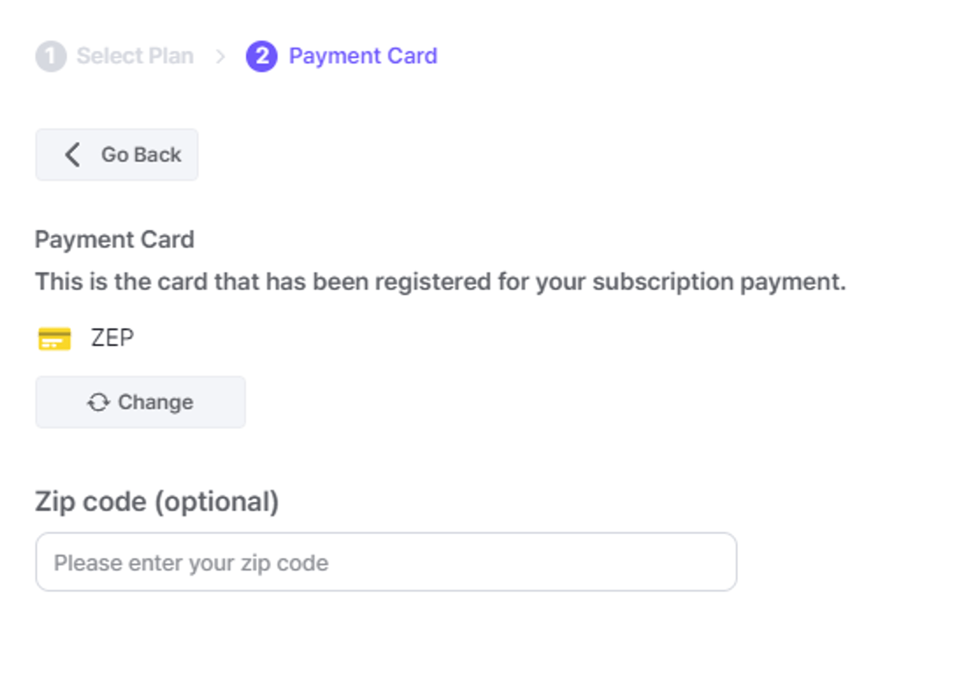 After registering your card, a field to enter your postal code will be displayed before payment.