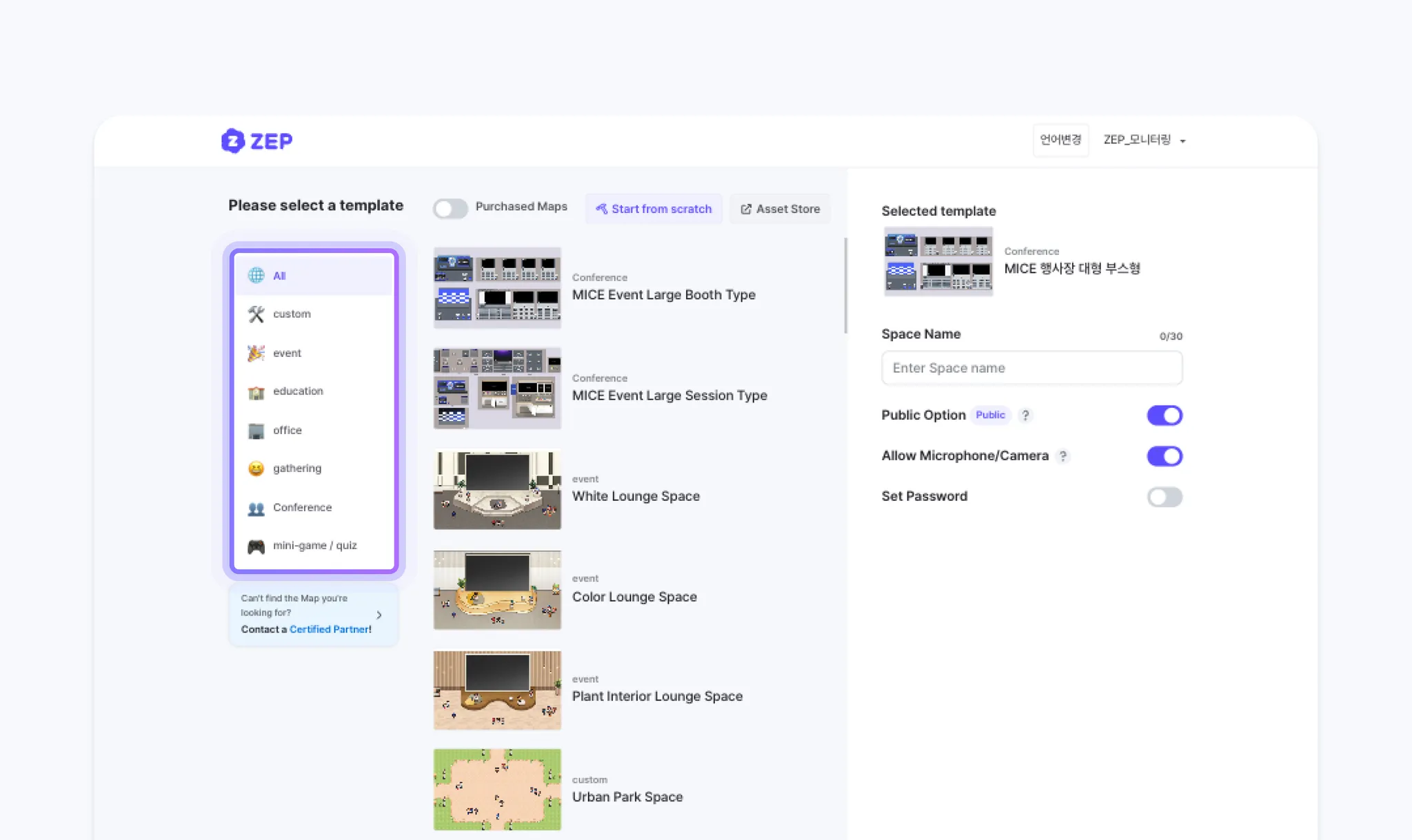 The flow has been redesigned to make it easier to select a space template. Everything can now be completed on a single tab.