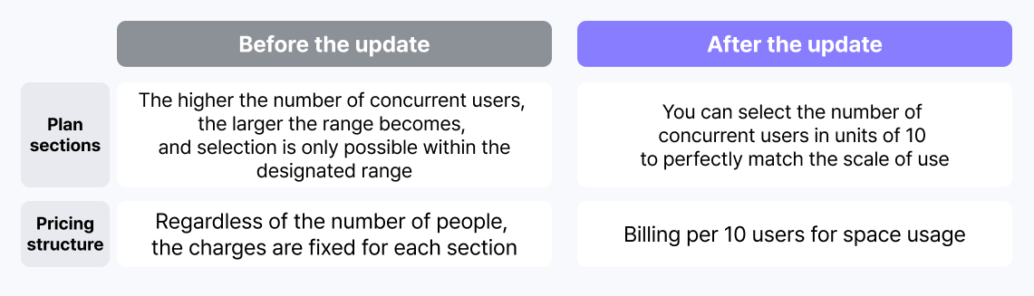 Before the update: Required concurrent users 138 → Payment for 200 users (due to plan limitations)
