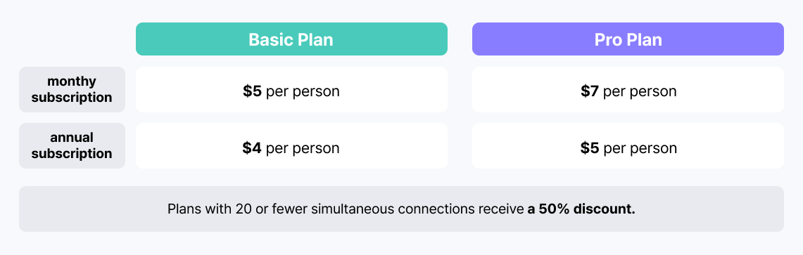 To better align our pricing with your usage needs, we are introducing more flexible subscription options that allow you to choose the exact number of concurrent users in increments of 10.