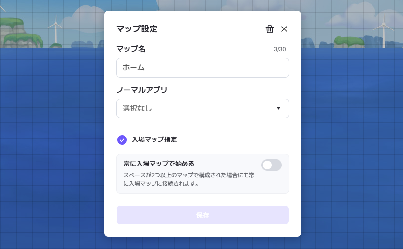 右側上段のごみ箱アイコンをクリックすることでマップを削除できます。