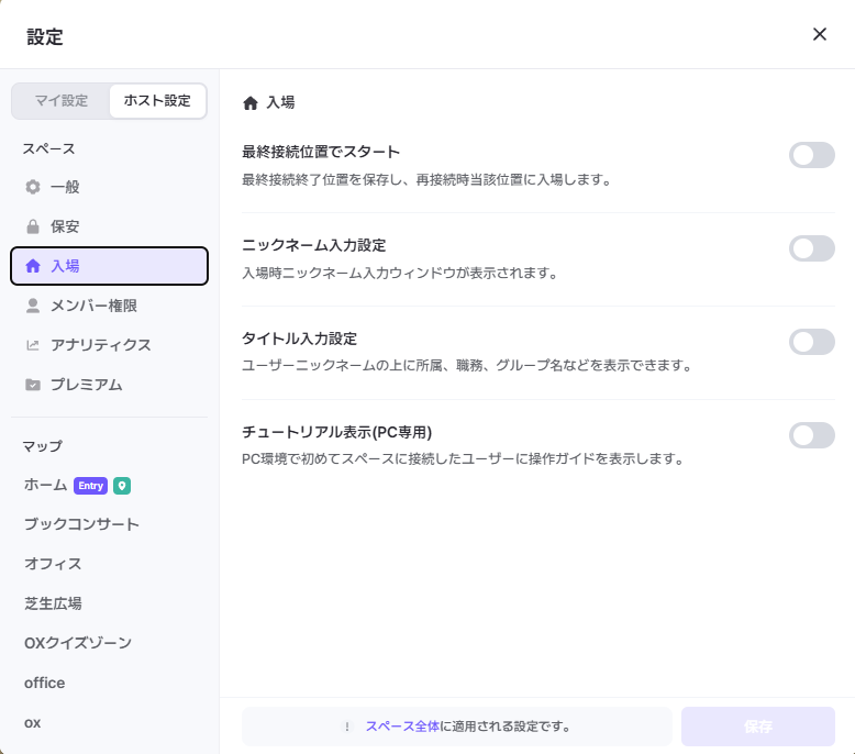 設定でこの機能をオンにすると、ユーザーの最後接続終了位置を保存します。