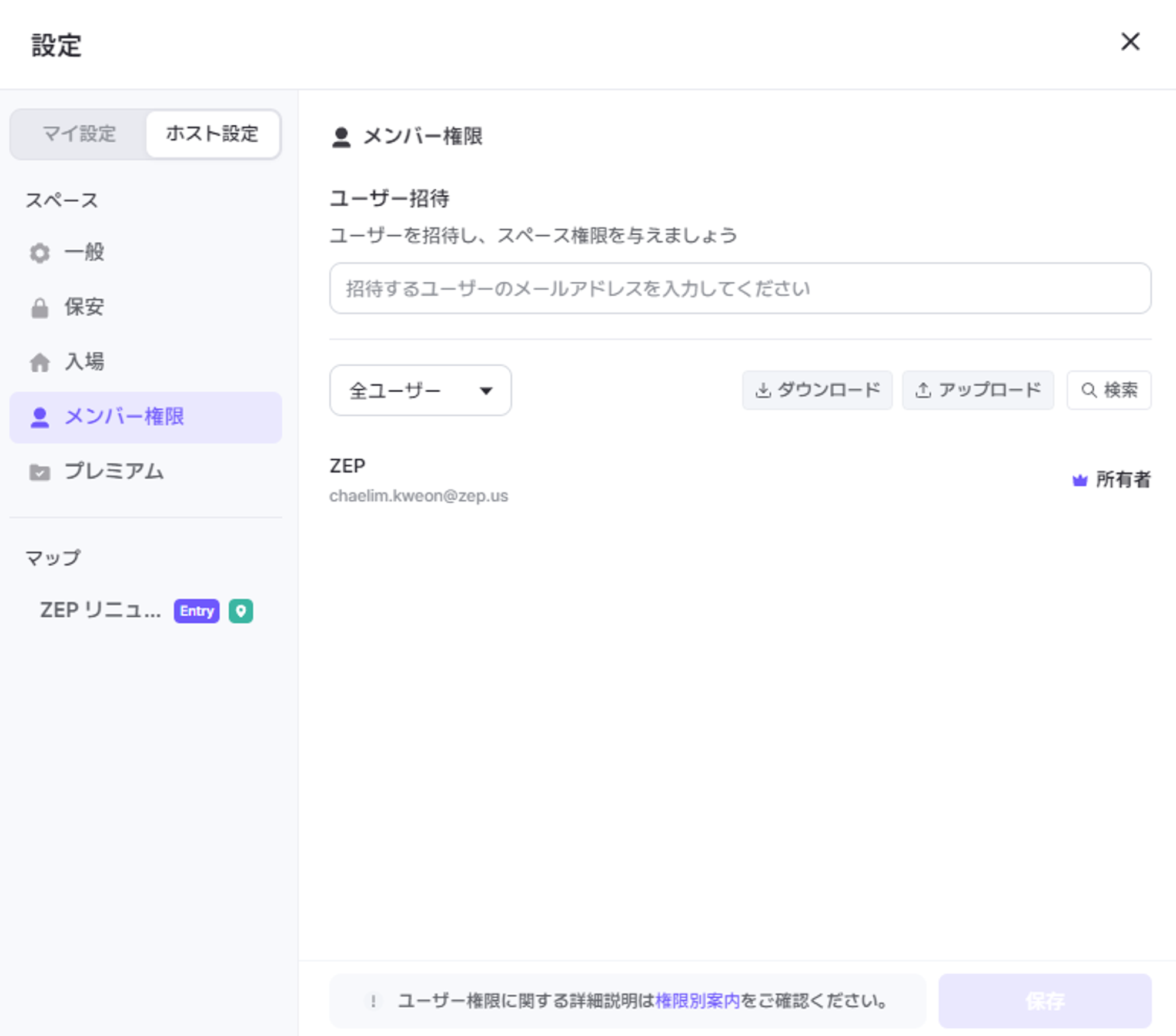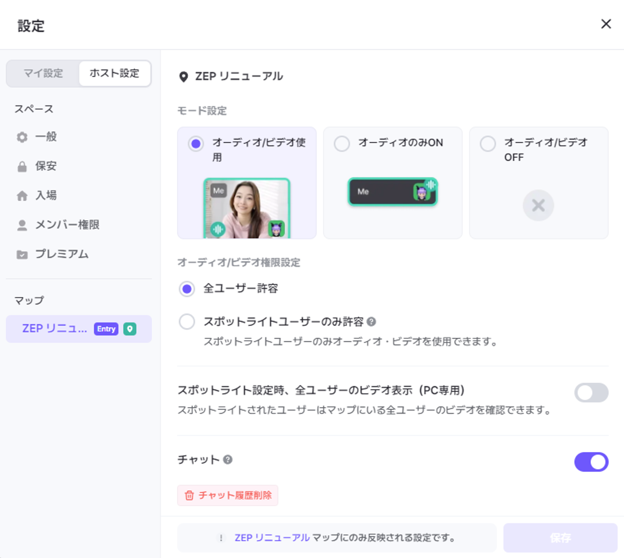 既存のマップ設定にあった[チャット履歴ダウンロード]機能がスペース設定に移動され、今後はスペース単位でチャット履歴をダウンロードできます。