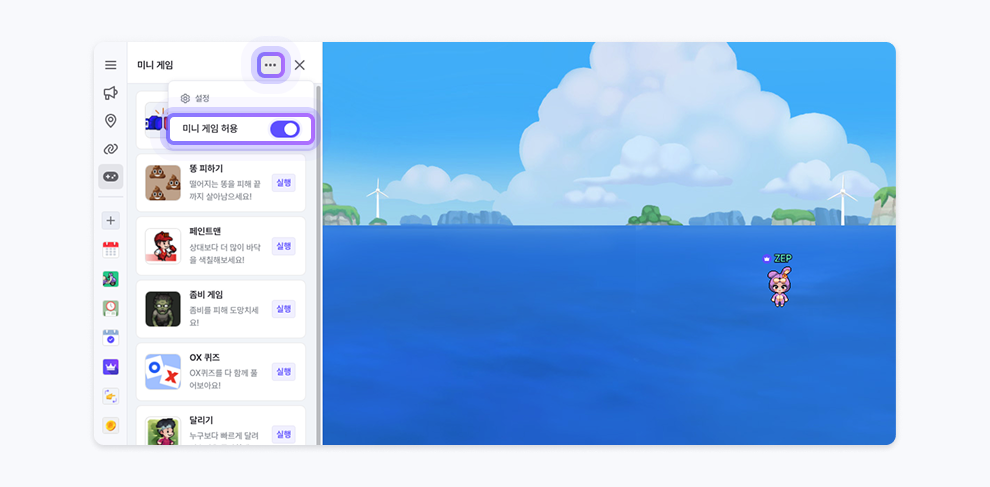 チャット・ミニゲーム・埋め込みの許可設定を、設定画面を開かずにサイドバーから直接確認・管理できるように改善しました。