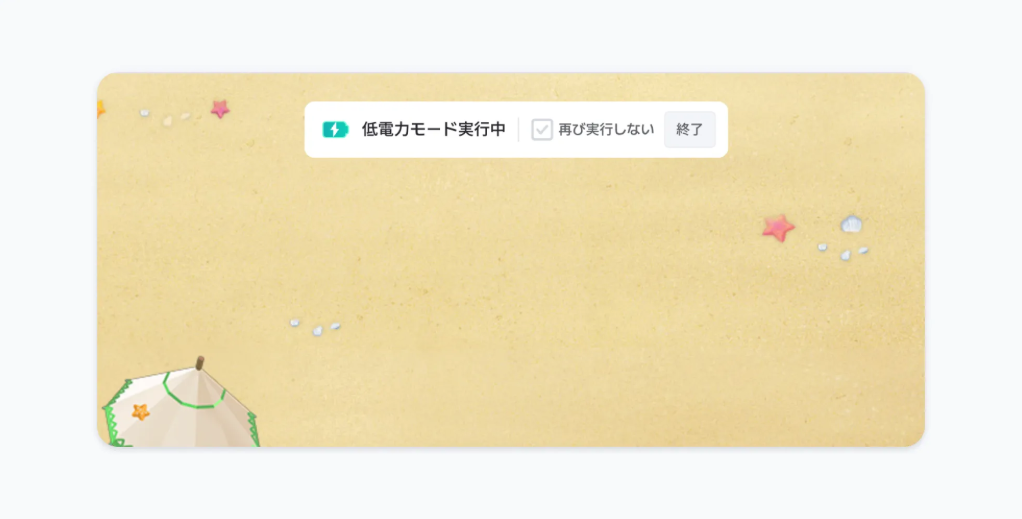 省電力モードを終了するには、[閉じる]ボタンをクリックする必要があります。