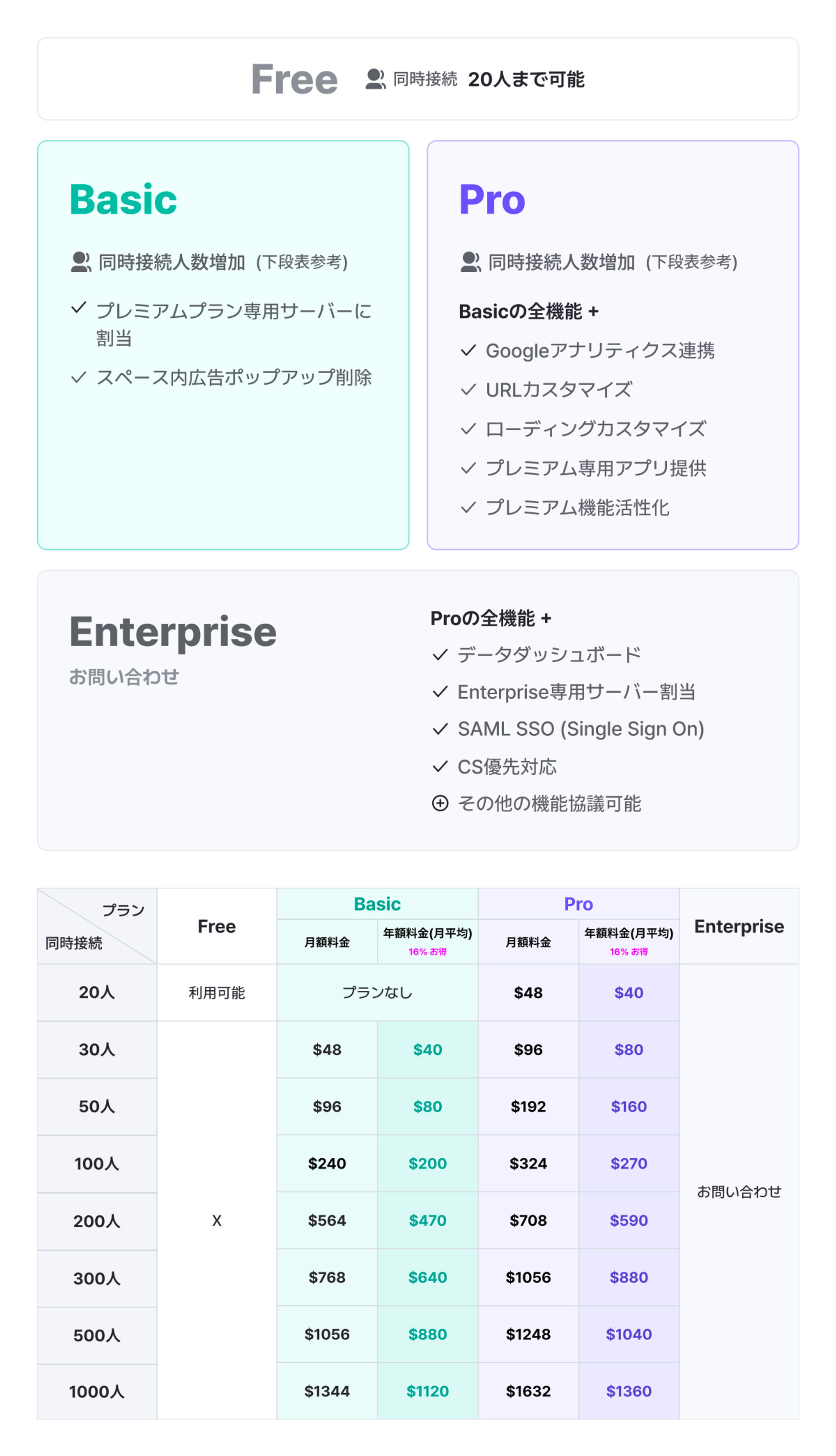 既存の「特別イベント」価格で月額サブスクリプションを利用しているお客様には、引き続き既存の特別イベント価格が適用されます。ただし、変更された価格の施行日以降にアップグレードまたはダウングレードを行う場合は、ご案内した新しい価格が適用されます。