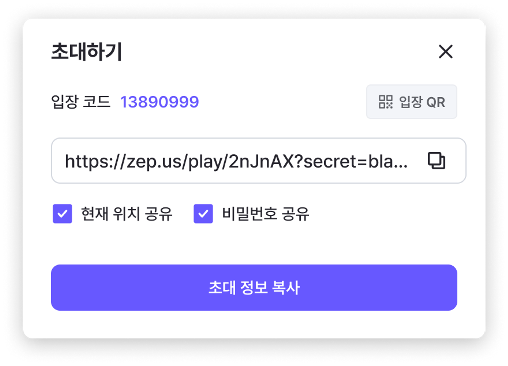 사용자가 현재 위치한 좌표를 다른 사용자와 공유하여 직접 초대할 수 있는 기능이 추가되었습니다