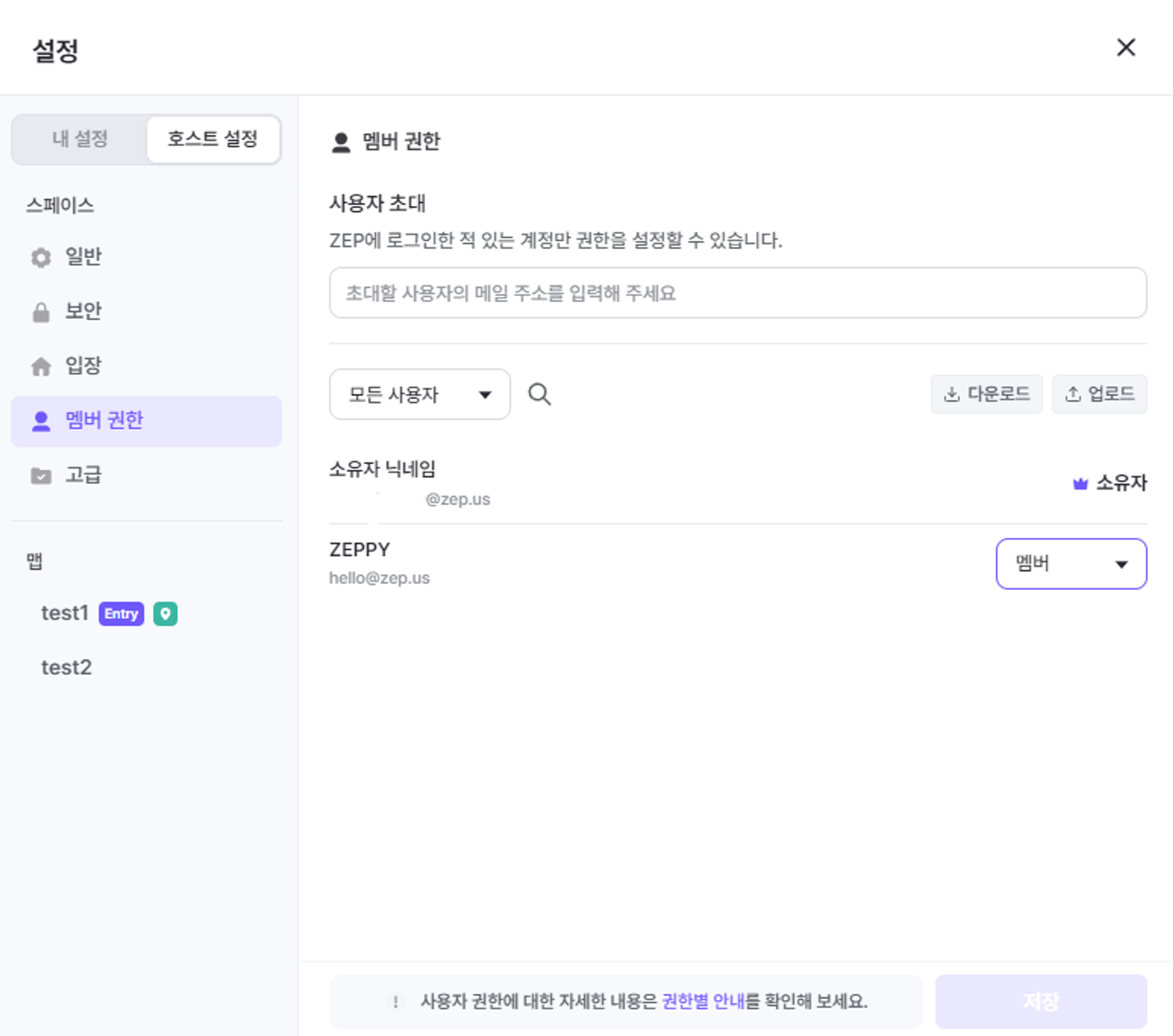 기존 맵 설정에 있던 "채팅 내역 다운로드" 기능이 스페이스 설정으로 이관되어, 앞으로는 스페이스 단위로 채팅 내역을 다운로드할 수 있습니다.