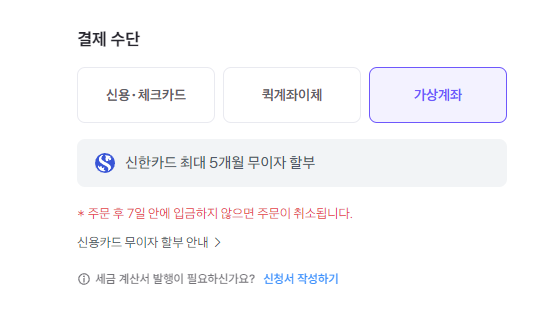 기존에는 카드 결제만 가능했으나, 다음과 같은 결제 수단이 추가되었습니다.