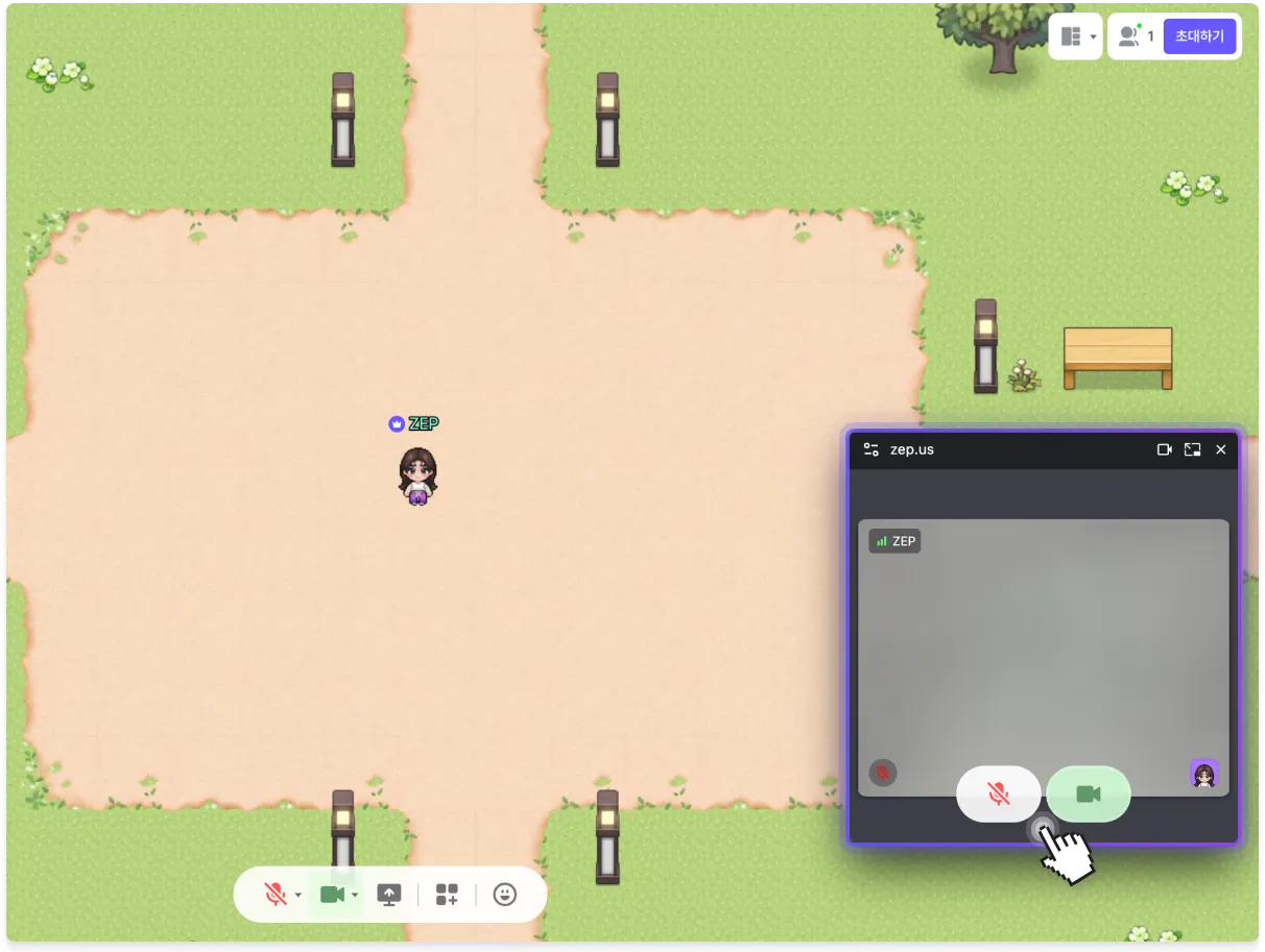 (*사용자 본인 비디오만 제어 가능하며, 타인의 비디오가 뜰 때에는 버튼이 노출되지 않습니다.)