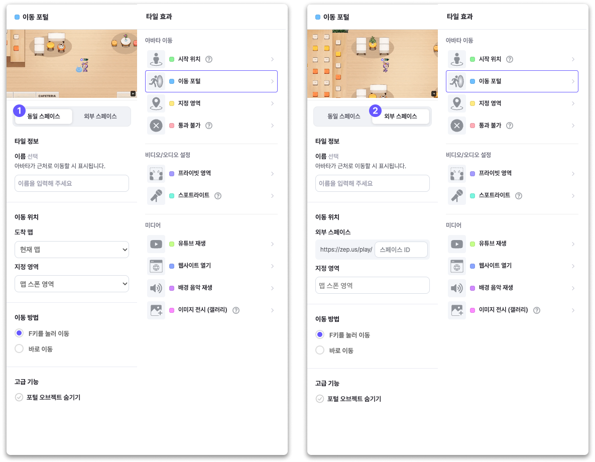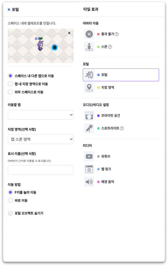 스페이스 내 다른 맵으로 이동 → 도착 맵: 다른 맵의 이름