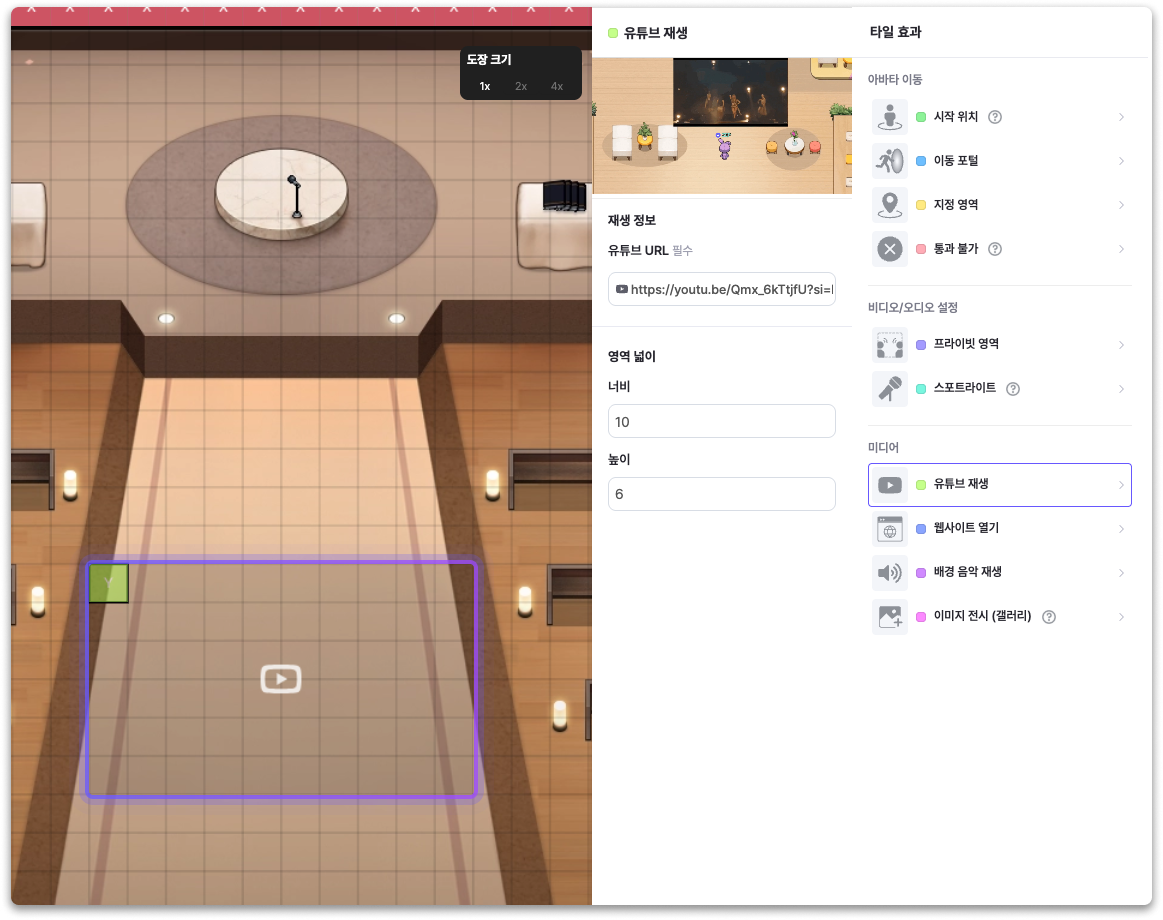 에디터에서 갤러리 타일효과를 설치하면, 플레이에서 유저들이 상호작용을 통해 이미지를 쉽게 임베드 할 수 있습니다.
