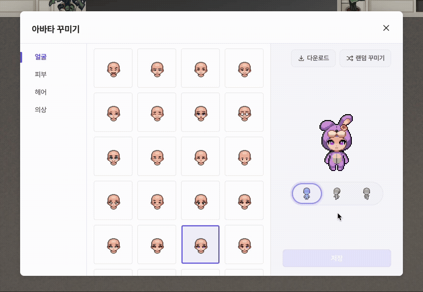 아바타 꾸미기 화면에 생동감 있는 모션이 추가되었습니다.