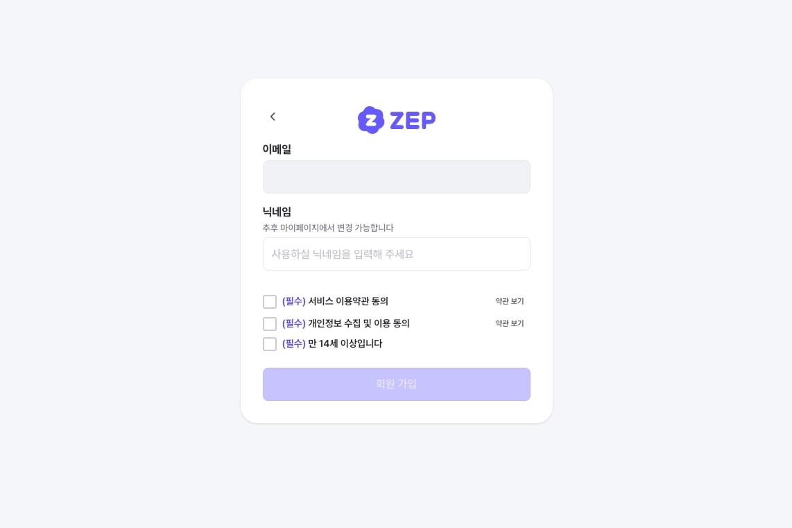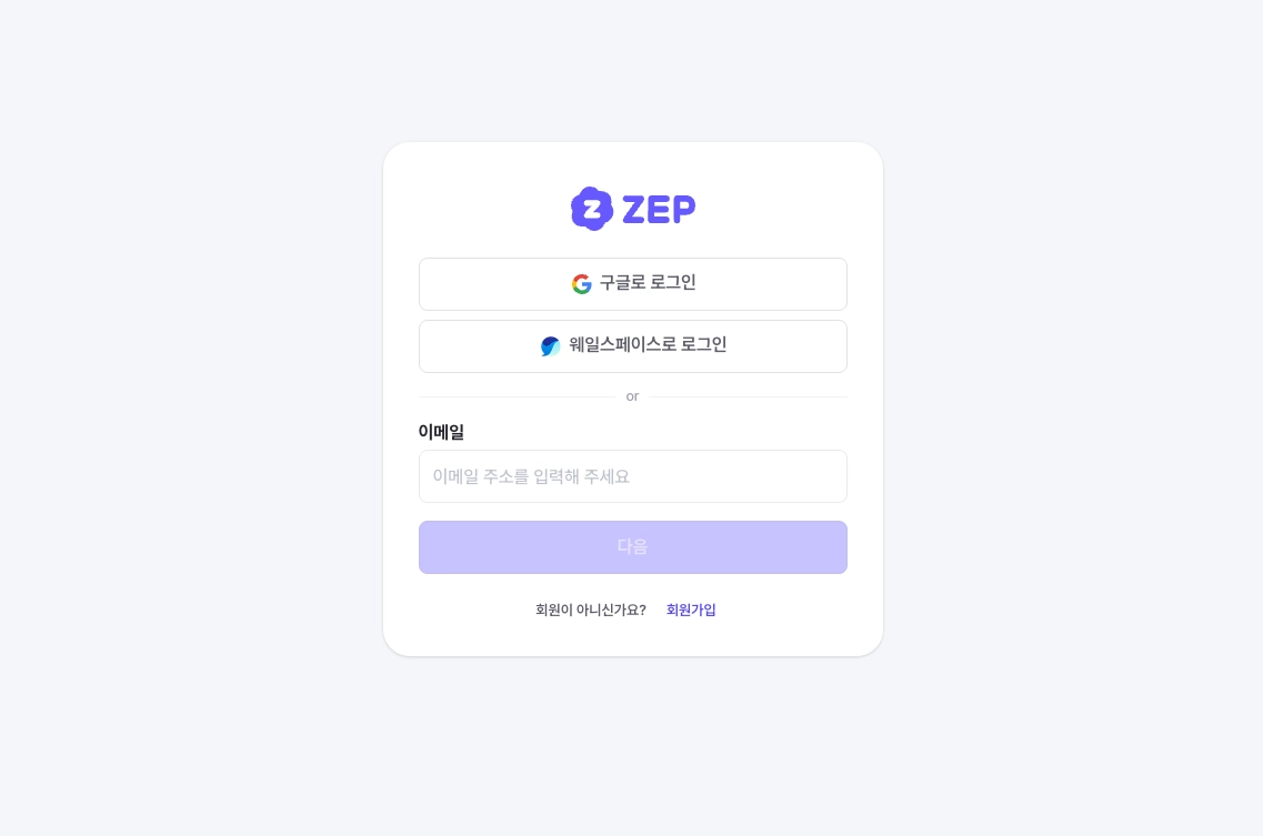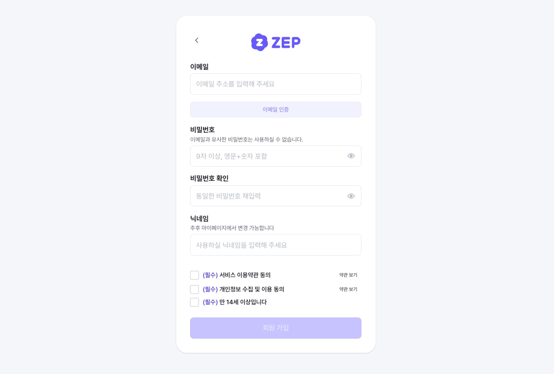 하나의 계정으로 모든 ZEP 서비스에 가입하고 로그인할 수 있습니다.