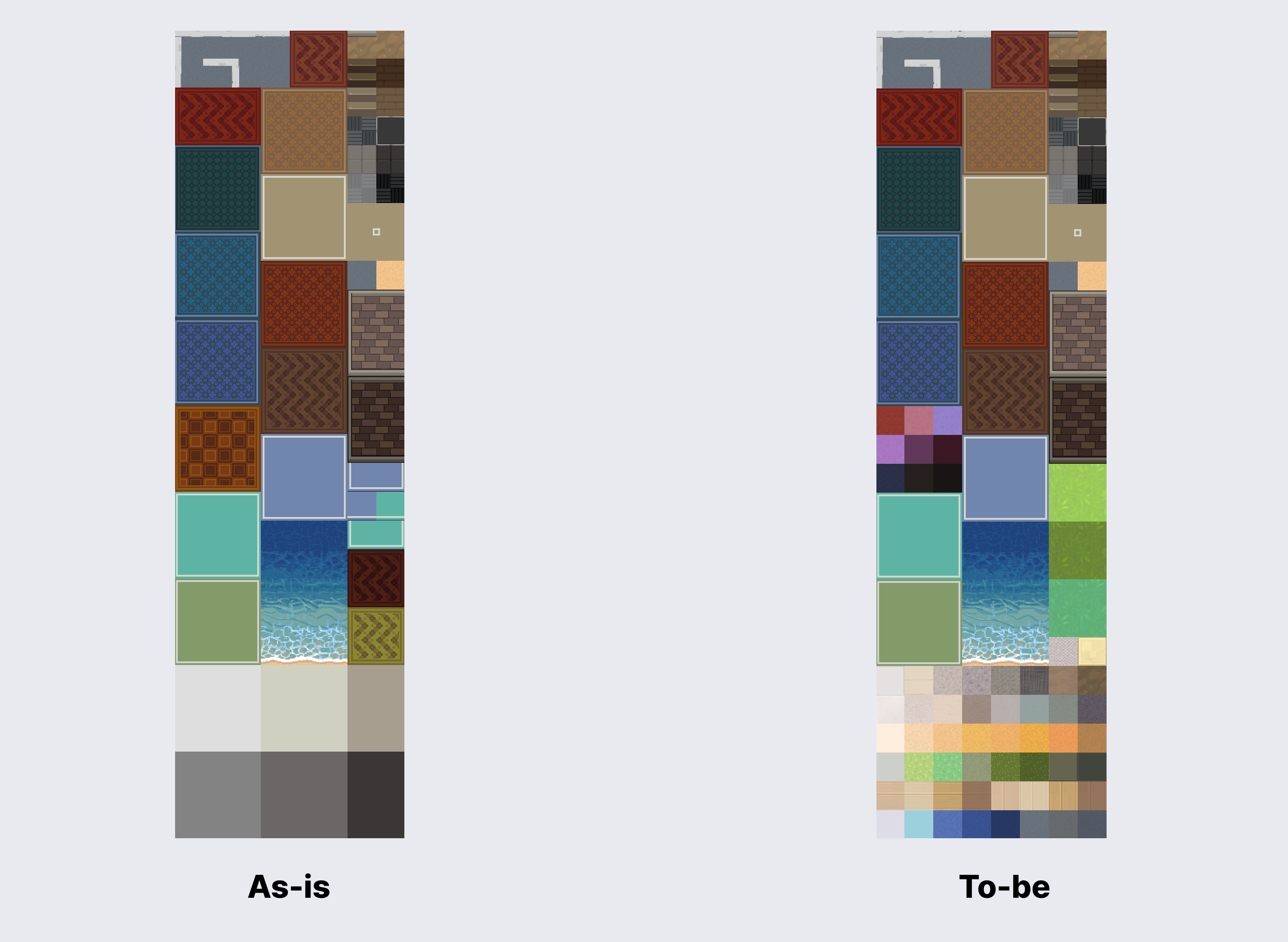 좌측 이미지는 업데이트 전의 타일 세트이며, 우측 이미지는 업데이트 후의 타일 세트 입니다.