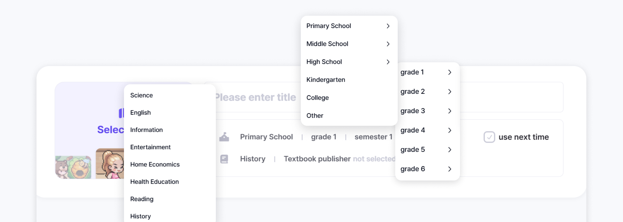 When creating a quiz now you can now include curriculum information including school level, grader.
