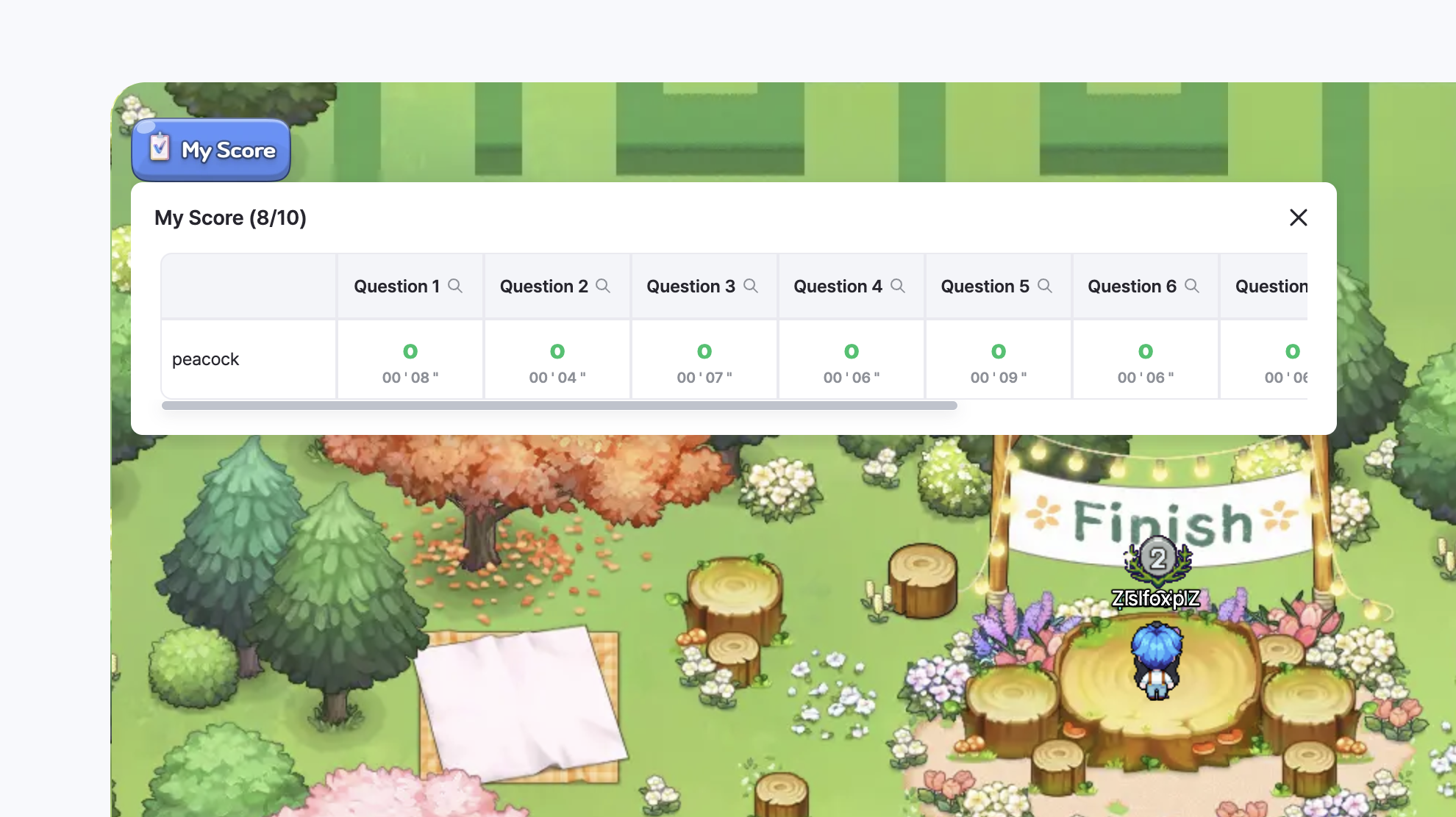 You can press the Quiz Ranking icon to check your ranking at the top right of the map. The ranking also displays the number of questions answered correctly and the time taken to solve the quiz.