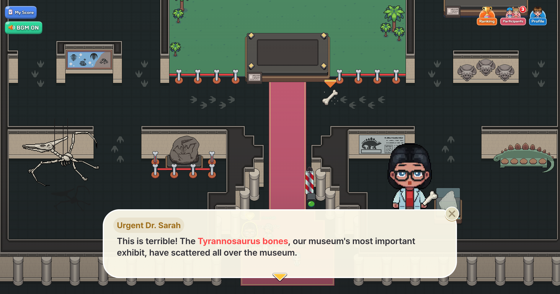 Solve quizzes, collect clues, and help restore the lost skeleton!