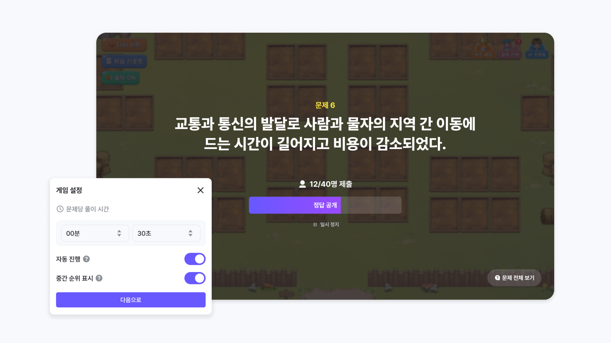 Choose whether to move to the next question automatically after time ends, or control it manually.