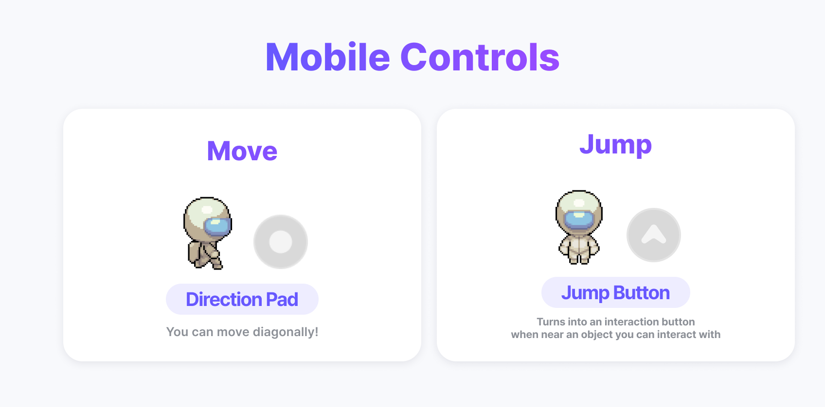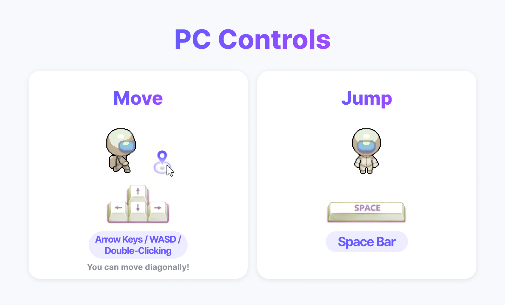 On your PC, you can control the avatar using the arrow keys, while on mobile, you can use the pad and buttons.