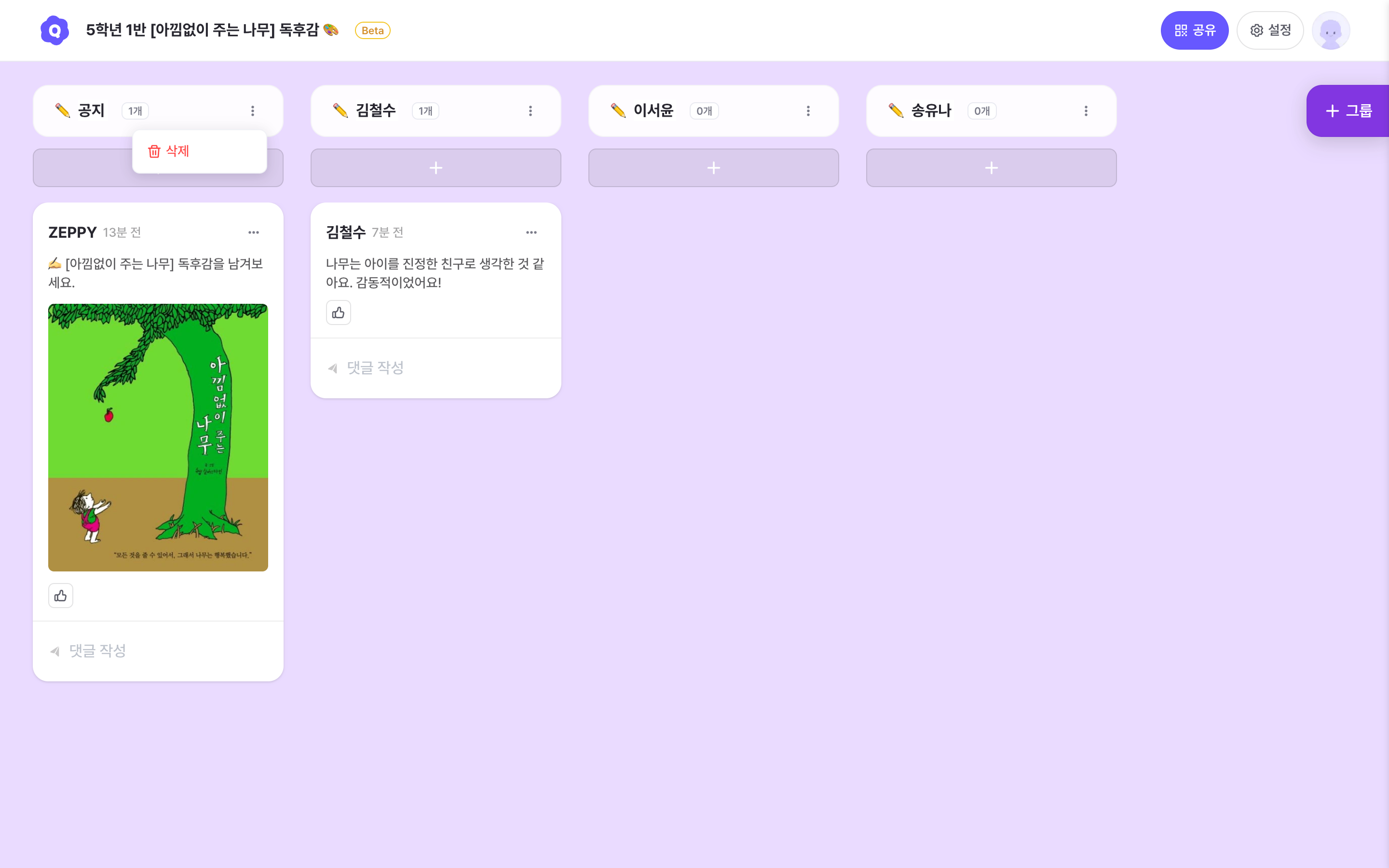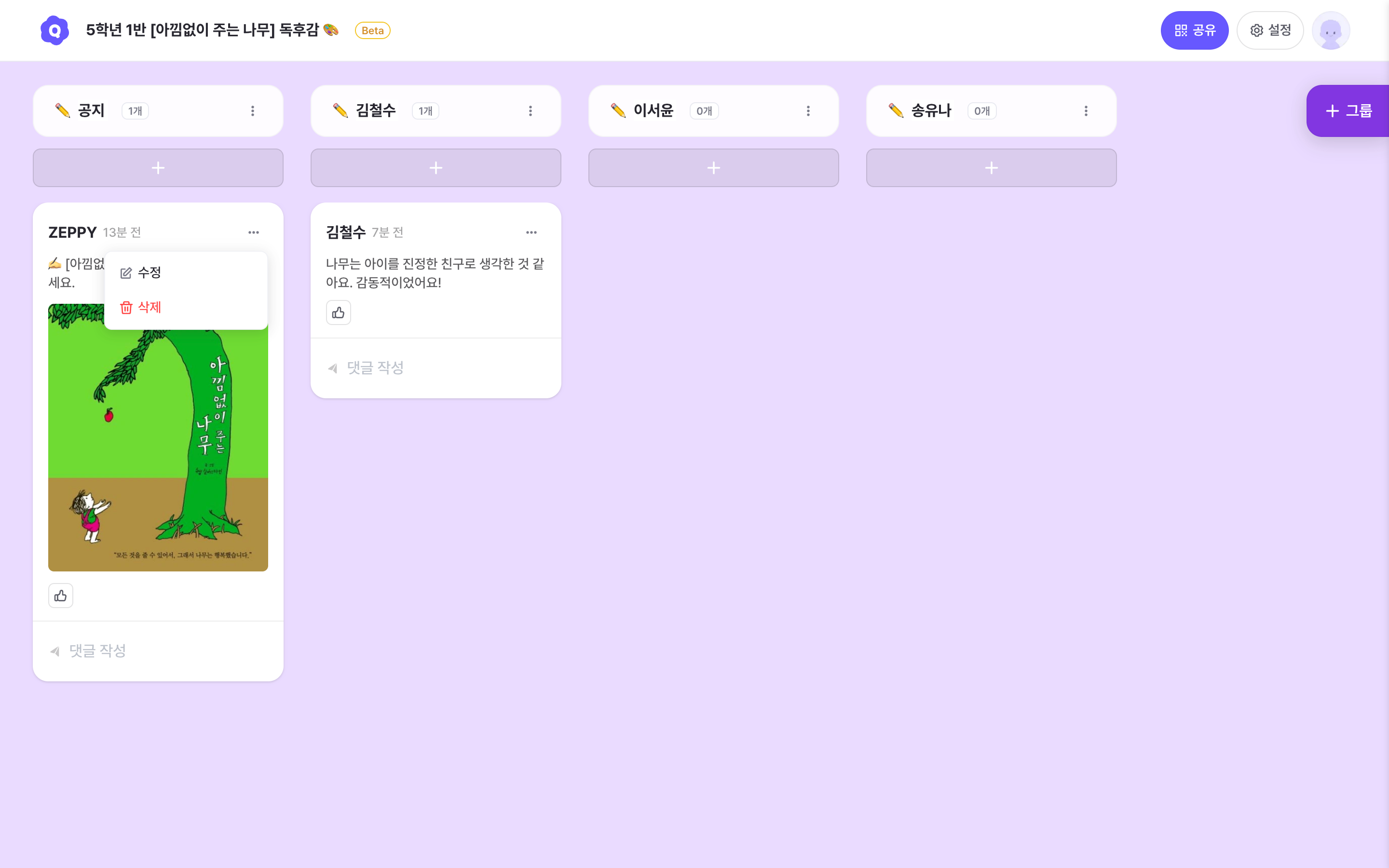 Click the More button on the group card to open the edit/delete options.